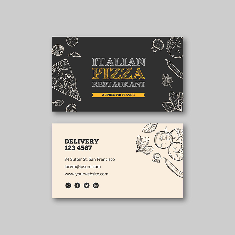 Modelos de Cartão de Visita para Pizzaria. Crie e imprima seu Cartão de Visita conosco e receba no seu endereço.